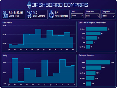 É é uma ferramenta visual que permite o monitoramento e a análise em tempo real das atividades de compras de uma organização. Ele exibe dados chave como volume de compras, gastos, desempenho de fornecedores, e tendências de preços em gráficos e tabelas.