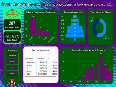 é uma ferramenta visual e interativa projetada para monitorar, analisar e reportar informações sobre os colaboradores de uma organização. Ele permite visualizar dados como distribuição de funcionários por departamento, níveis de produtividade.