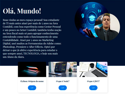 Sou estudante de TI mais antes atuei por mais de 5 anos na Área Contábil, com boa experiência como Gestor Pessoal e um pouco no Setor Contábil, também tenho noção na Área Fiscal mais só para agregar conhecimento entendendo como todo o funcionamento de uma Contabilidade. Atuei por 2 anos no Marketing Digital, usei muitos as Ferramentas do Adobe como: Photoshop, Premiere e After Effects. Optei por deixar o que já obtive experiência para estudar o que sempre amei, TECNOLOGIA, e hoje sou mais um Aluno da Alura. Foi na empresa Up Marketing que obtive minhas primeiras experiências como Desenvolvedor, criei projetos usando Wordpress, HTML5, CSS3, React entre outros projetinhos apenas para praticar.